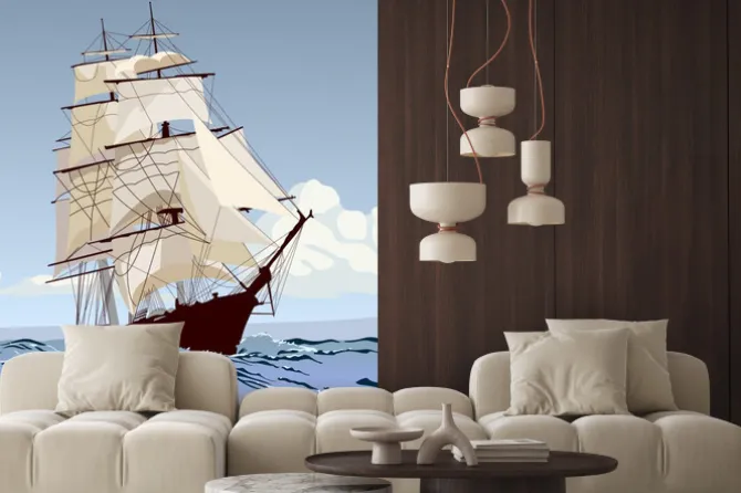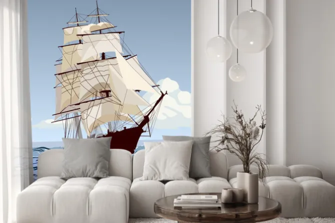 Fototapeta: Корабль с парусами бежит по волнам