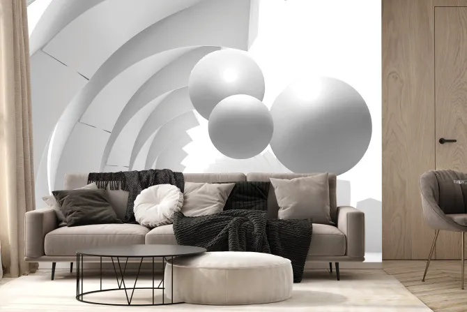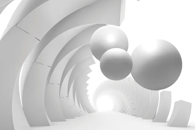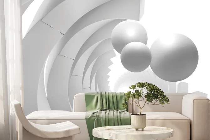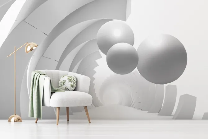 Fototapeta: 3d ściana z tunelem i latającymi piłkami