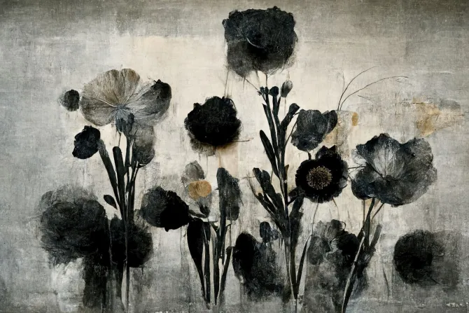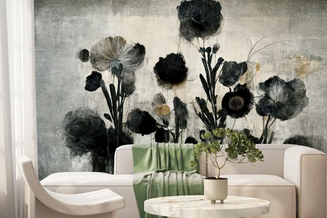 Abstrakcyjne kwiaty w nowoczesnym stylu na betonowym tle.