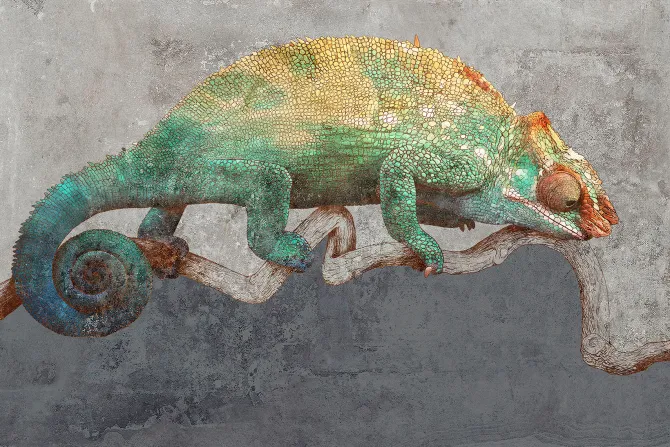 Abstrakcyjny kameleon na gałęzi.