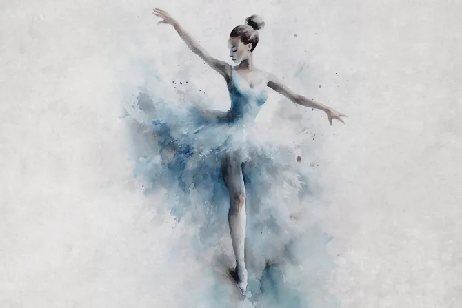 Akwarela baletnicy na betonowym tle.