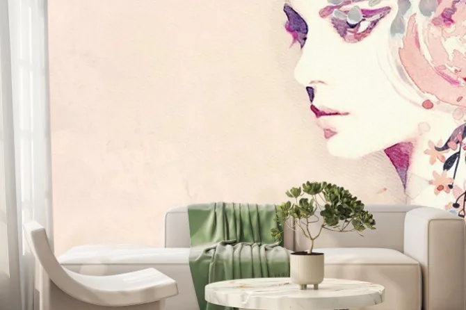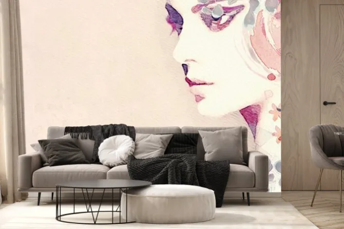 Fototapeta: Akwarelowa twarz kobiety z kwiatami