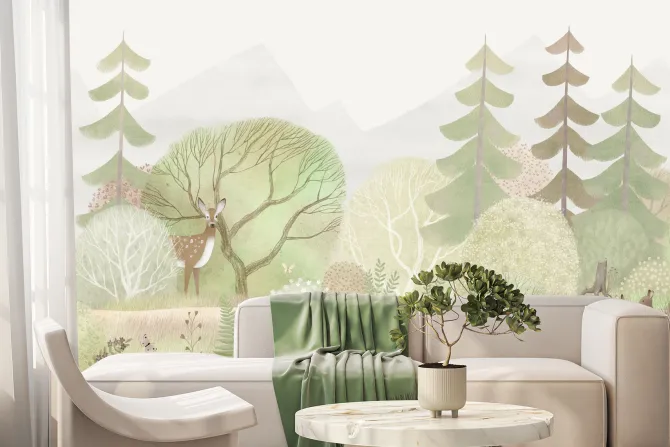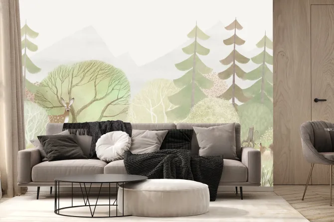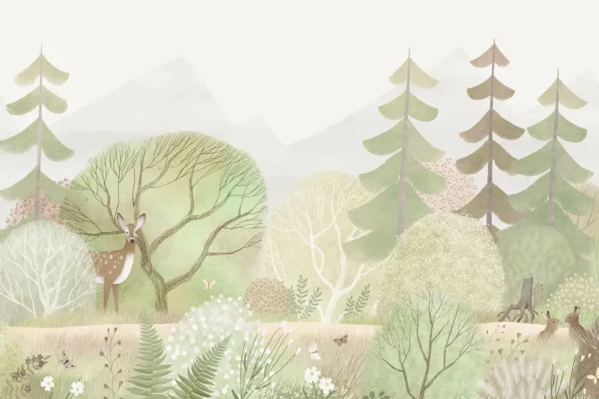 Fototapeta: Akwarelowy las rośliny i zwierzątka leśne ilustracja