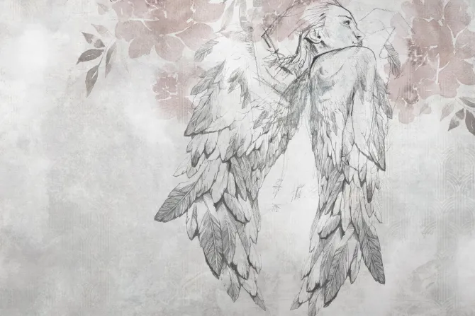 Fototapeta: Artystyczna kobieta anioł z akwarelowymi kwiatami i teksturą