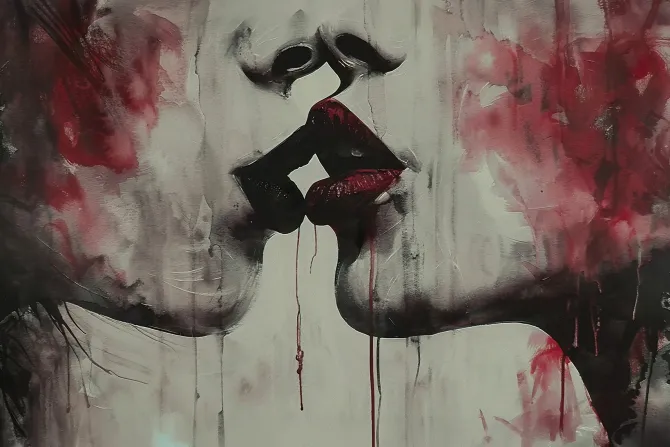 Artystyczne przedstawienie kobiecego pocałunku.