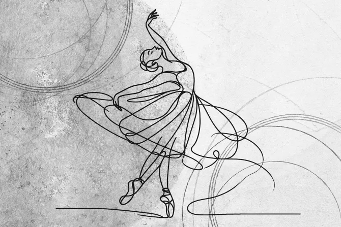 Artystyczny rysunek linii przedstawiający baletnicę w tańcu.