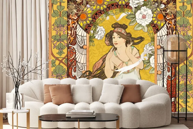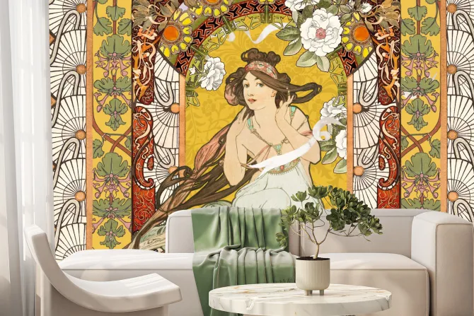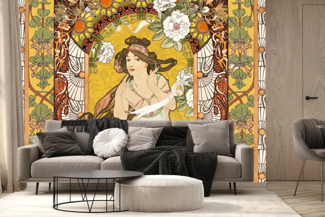 Fototapeta: Artystyczny wizerunek portret kobiety inspirowany alfonsem muchą