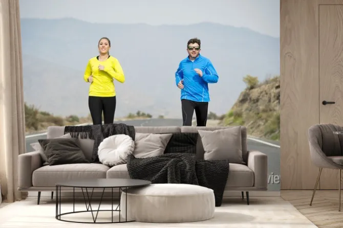krajobrazy, bieganie, droga, para, zespoły, siłownia, sport, góry, zdrowie