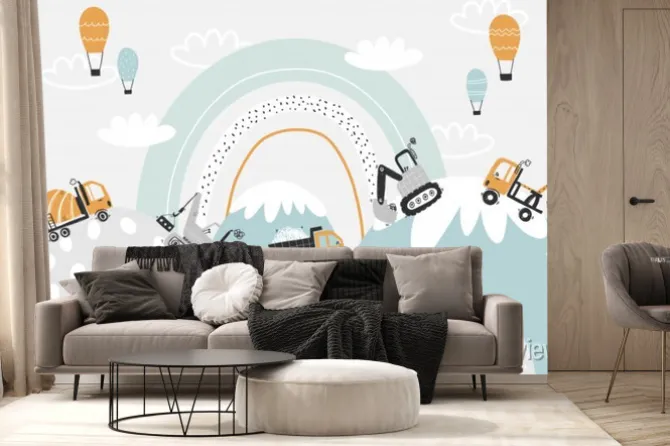 styl skandynawski, droga, pokój dziecięcy, sztuka, żuraw, ciągnik, rysunek, krajobrazy, moda