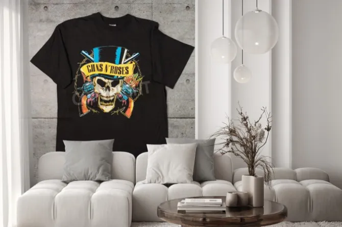 AVEIRO, PORTUGALIA – 20 lipca 2016: koszulka reklamowa Guns n 'Roses. Guns N 'Roses jest najlepiej sprzedającym się zespołem wszechczasów..