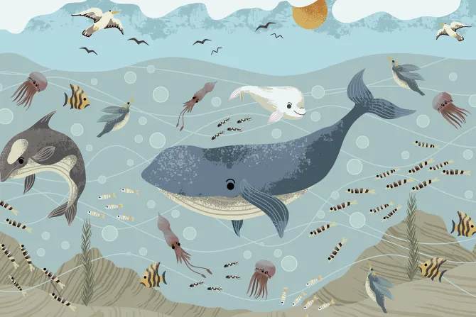 ptaki, meduza, wieloryb, delfin, Zwierzęta, ryby, ocean, morze, krajobrazy