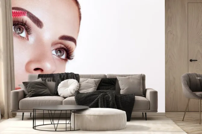 Fototapeta: Beautiful woman with extreme long false eyelashes. eyelash extensions.