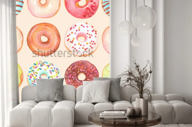 Fototapeta: Bezszwowy tło akwareli kolorowi donuts glazurujący.