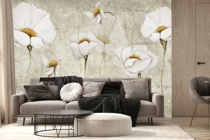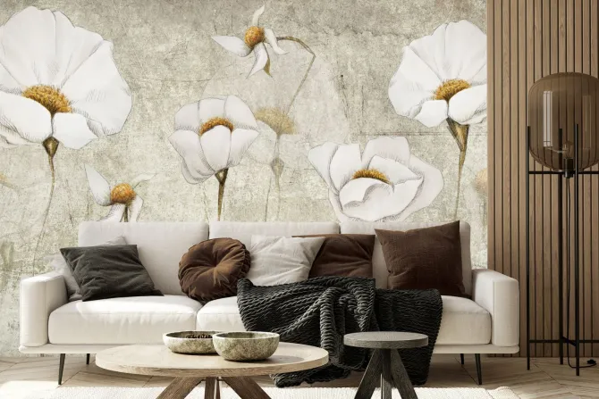 Fototapeta: Białe kwiaty na tle betonu wzór w stylu industrialnym