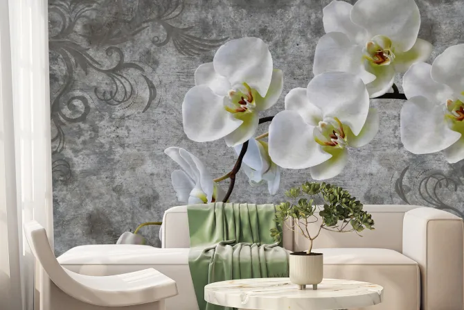 Fototapeta: Biały kwiat storczyk na betonie