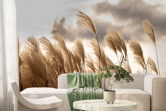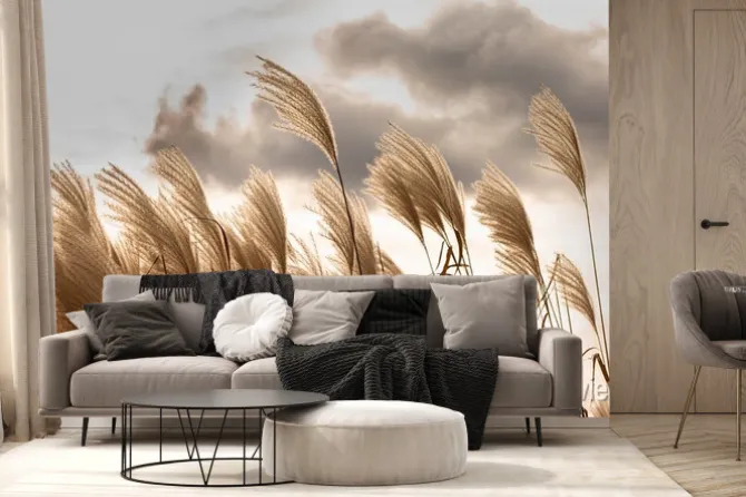 Fototapeta: Boho trawa pampasowa falująca na wietrze