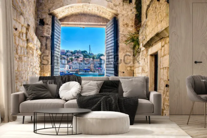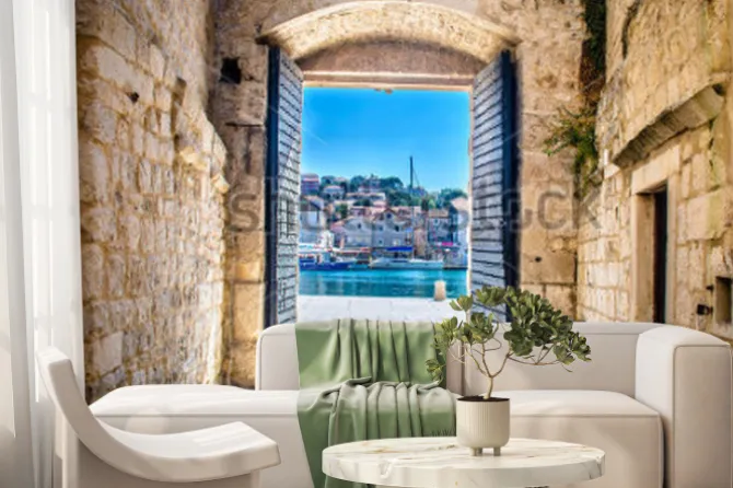 Fototapeta: Brama z widokiem na śródziemnomorskie miasteczko