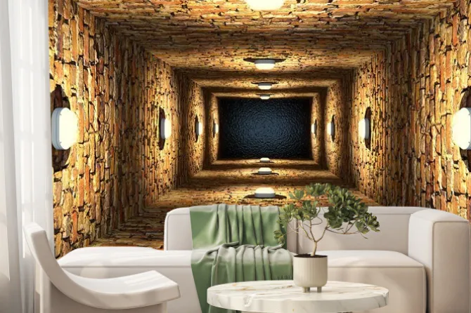 korytarz, perspektywa, cegła, ziemia, tunel, efekt 3D, woda, widok
