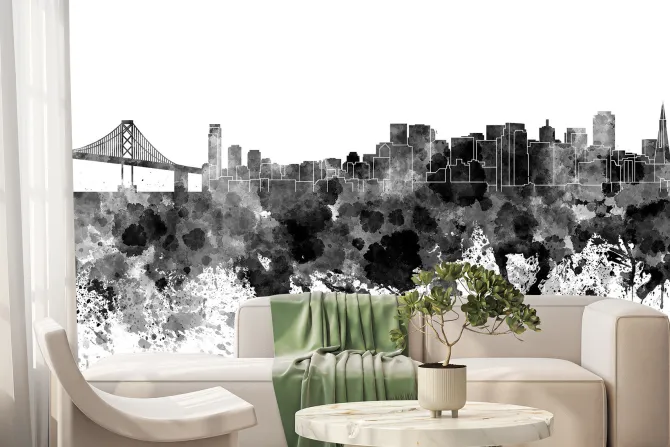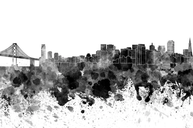 San Francisco, abstrakcja, akwarela, wieżowce, mosty, miasta