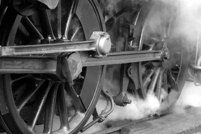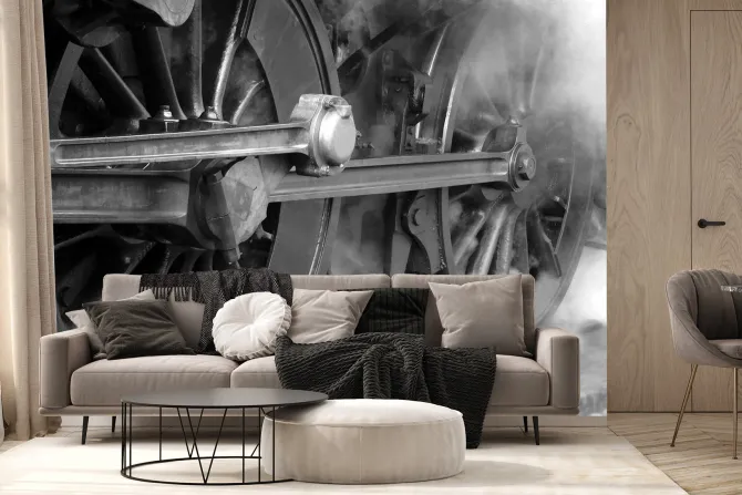Fototapeta: Czarno-białe zdjęcie kół pociągu