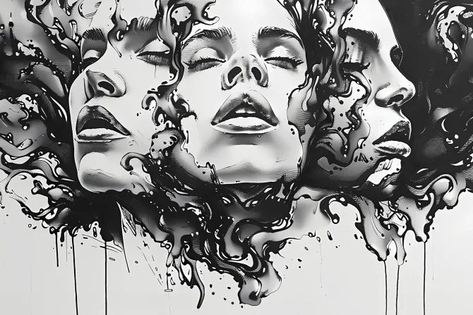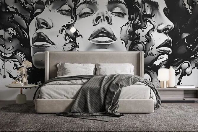 Fototapeta: Czarno-biały mural z kobiecą twarzą