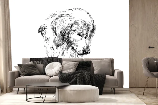 Fototapeta: Czarno biały portret psa w stylu szkicu