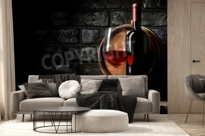 Fototapeta: Czerwone wino na tle starych czarnych cegieł