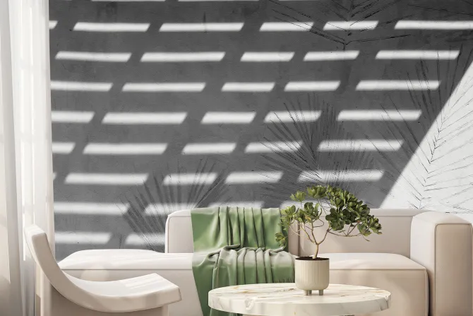 Fototapeta: Delikatne odbicie palm na ścianie z cieniem