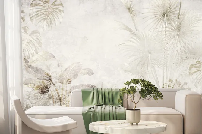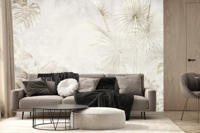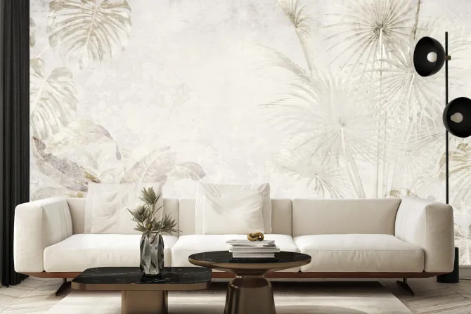 Delikatny botaniczny wzór w beżach.