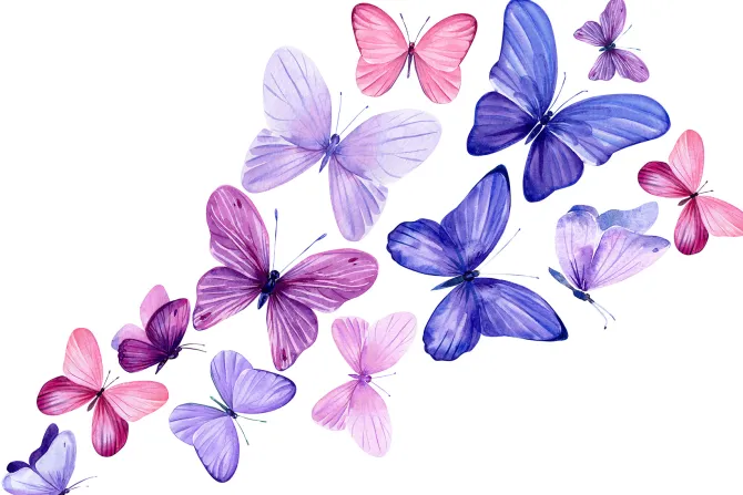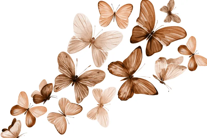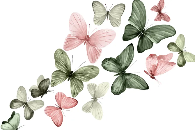 Delikatny wzór z motylami w stylu akwareli na jasnym tle.