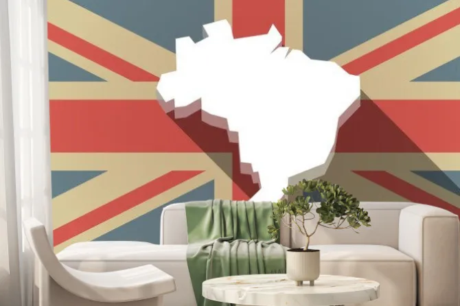 Fototapeta: Długi cień uk flag ikona z mapą brazylia