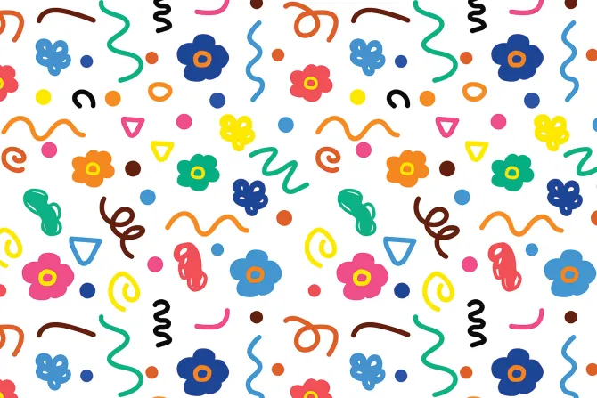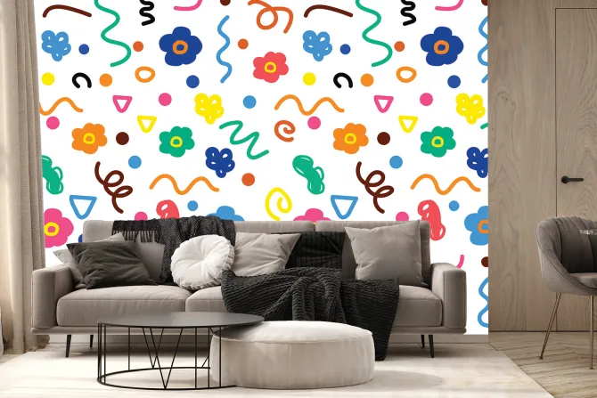 Dziecięcy wzór w kwiaty i kształty.