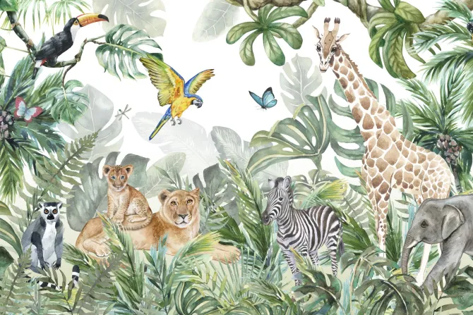 Dzikie zwierzęta w akwarelowej dżungli.