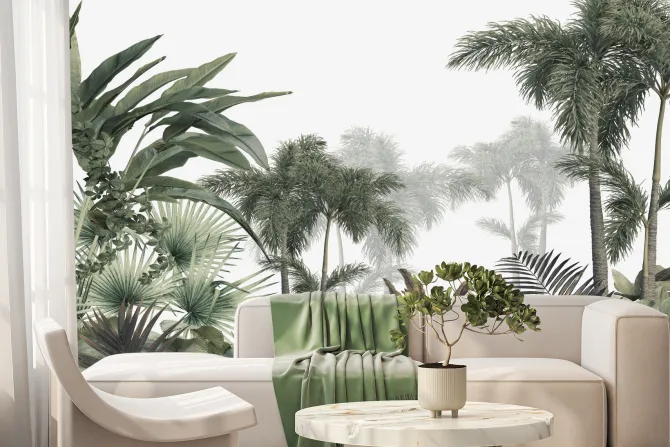 Fototapeta: Dżungla tropikalne rośliny minimalistyczny krajobraz