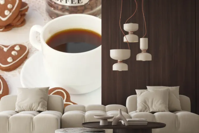 Fototapeta: Filiżanka kawy i ciasteczka czekoladowe