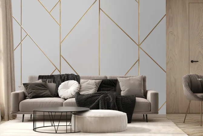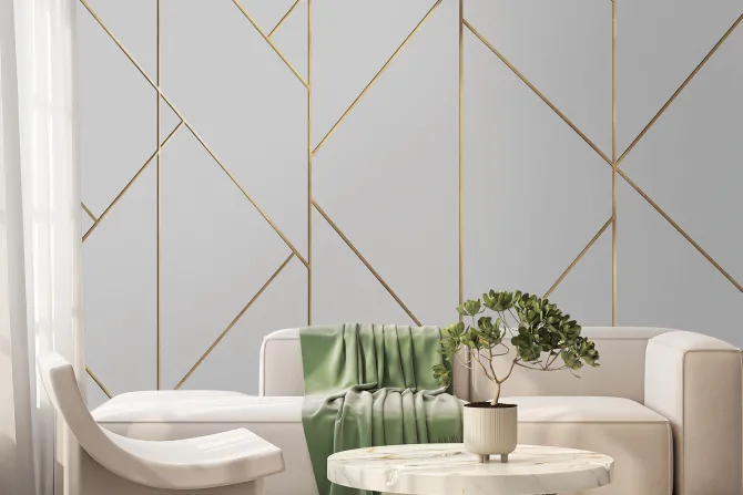 Geometryczny wzór ze złotymi liniami.