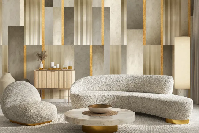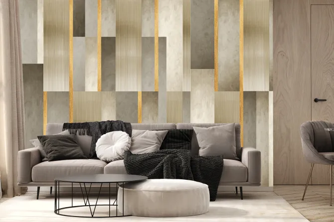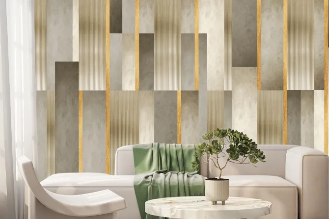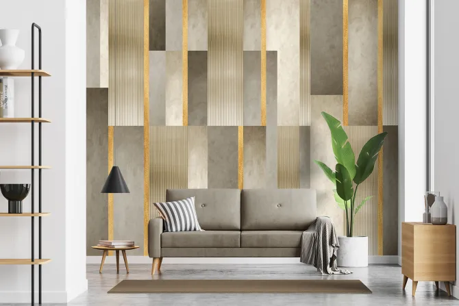 Fototapeta: Geometryczny wzór złote paski i tekstura betonu nowoczesna dekoracja