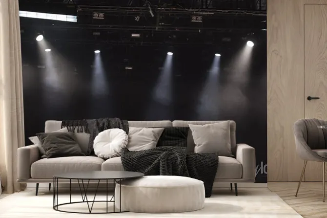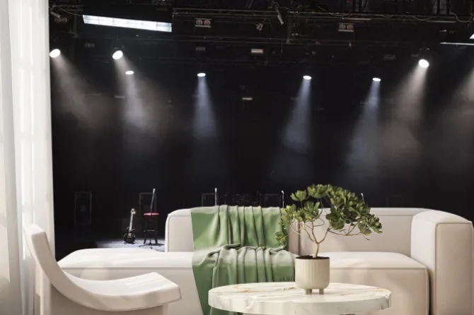 Gitara i inny sprzęt muzyczny na scenie przed koncertem.