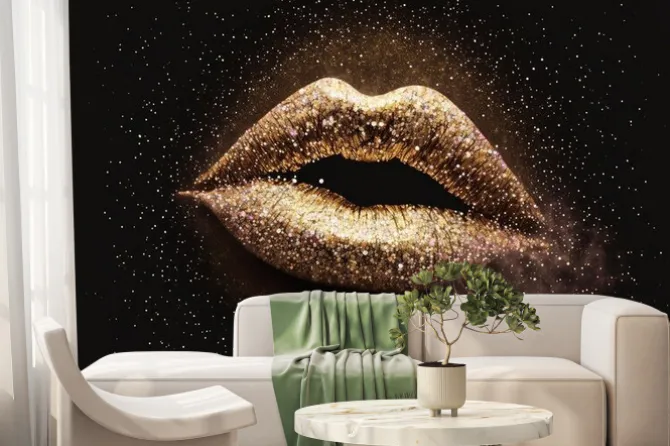 Fototapeta: Golden lips, sexy smile, disco and glamour