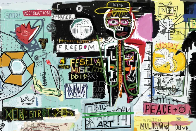 sztuka, abstrakcja, grafiti, ptak, koło, samochody, pop art
