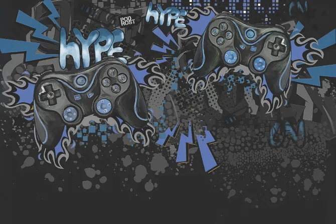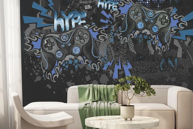 Graffiti młodzieżowe z kontrolerami do gier.