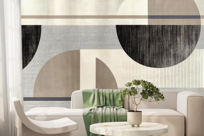 Grafika z geometrycznymi kształtami w szarych odcieniach.