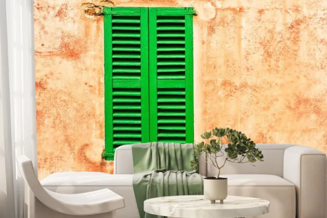 Fototapeta: Grüne haus fensterladen wand mediterran wohnen