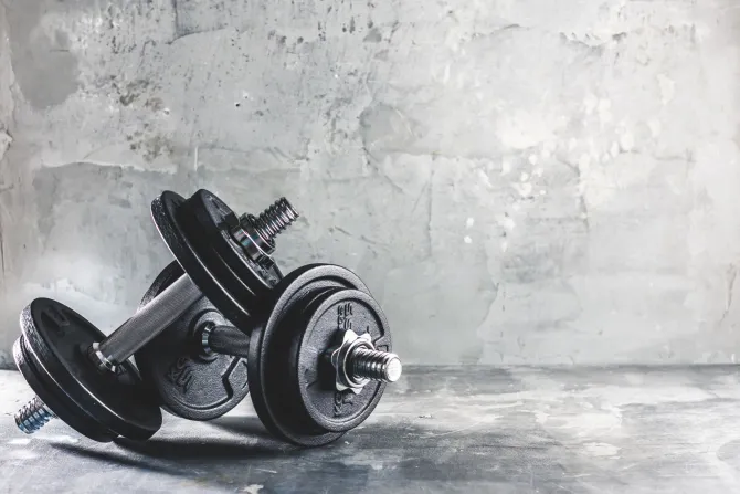 Hantle ciężary na betonowym tle.