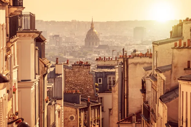 Fototapeta: Historyczny miasto przy zachodzie słońca