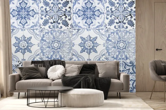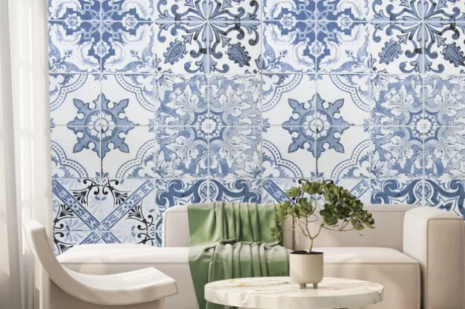 Fototapeta: Imitacja niebieskich płytek ornamentalnych