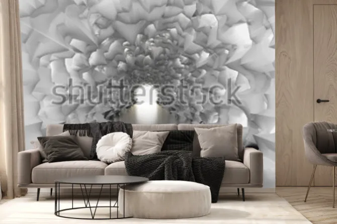 Fototapeta: Jasny tunel ze światłem z efektem 3d