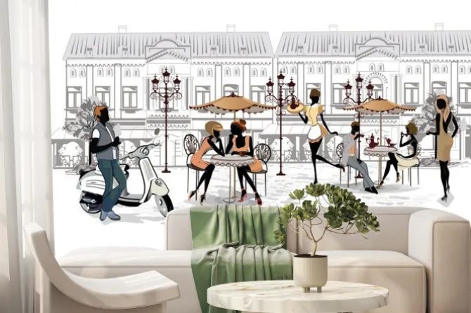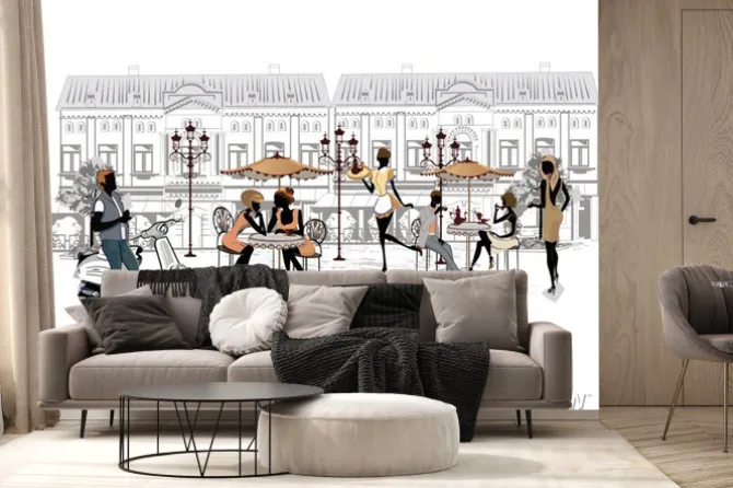 Fototapeta: Kawiarenka na starym mieście w stylu graficznym
