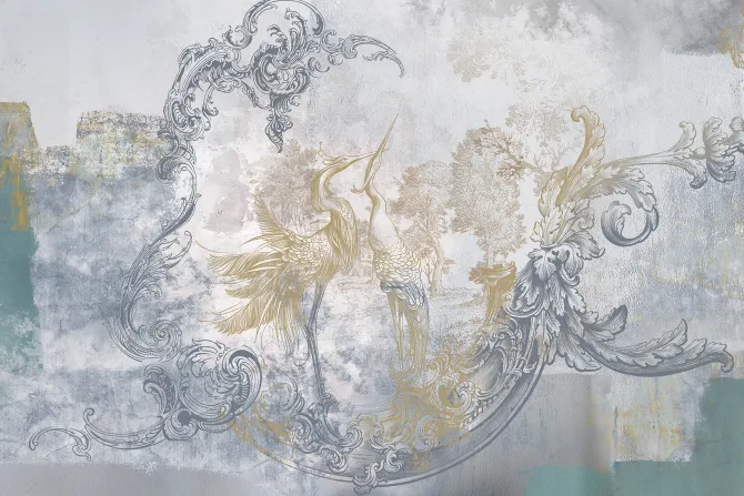 Klasyczny barokowy kolaż w pastelowych kolorach.