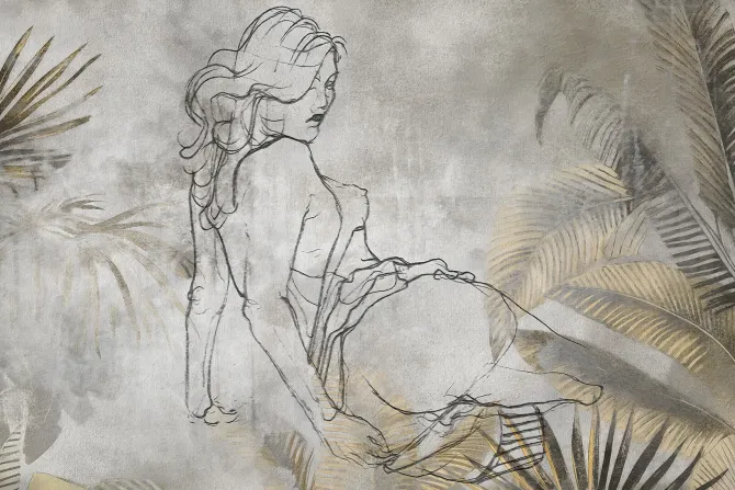 Kobiece kształty wśród tropikalnej roślinności.
